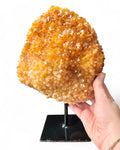 Bring warmth, energy, and abundance into your space with this Heat-Treated Citrine on a stand. Heat-Treated Citrine is believed to amplify energy, dispel negativity, and inspire confidence and motivation. Displayed on a stand, it becomes a striking focal point that radiates uplifting energy throughout any room or workspace.