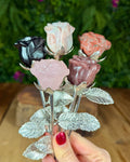 A crystal rose with a metal stem is a beautiful symbol of love, grace, and timeless elegance. Each rose is carved from natural crystal, capturing the beauty and delicacy of a real flower while offering the energetic benefits of the stone itself. Paired with a detailed metal stem, it becomes a striking keepsake that blends natural magic with artistic craftsmanship.