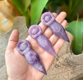 This Lepidolite Spiral Goddess Carving beautifully combines the soothing energy of Lepidolite with the symbolism of feminine wisdom and spiritual growth. The spiral goddess represents cycles, transformation, and connection to the divine, making this a powerful piece for spiritual practice, altar work, or personal reflection.