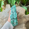 Malachite & Chrysocolla is a beautiful mix of stones. It brings together beautifully the properties of these crystals. It provides protection and grounding. It can help with connection to intutition and spirit realms. It is fantastically calming and has a fabulous healing effect of mind body and spirit.