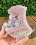 A Pink Amethyst moon on a stand is a beautiful reminder to slow down, listen inward, and move through life with softness and compassion