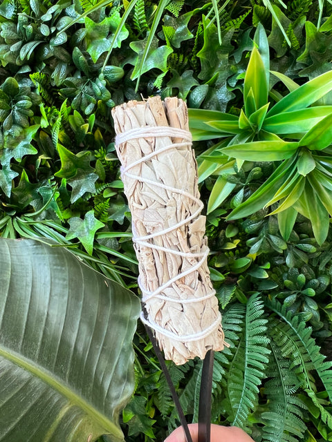 White sage is traditionally used for energy cleansing and spiritual purification. It is believed to clear stagnant or unwanted energy from spaces, objects, and personal auras while restoring balance and harmony.