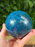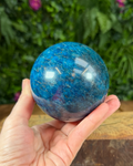 Bright, vibrant, and full of uplifting energy, Apatite spheres are known for stimulating clarity, communication, and inspired action. With their ocean-blue hues and swirling internal patterns, these spheres make a striking addition to desks, studios, meditation areas, or anywhere you want to spark motivation and creativity.