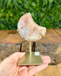 A Pink Amethyst moon on a stand is a beautiful reminder to slow down, listen inward, and move through life with softness and compassion