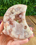 A Pink Amethyst moon on a stand is a beautiful reminder to slow down, listen inward, and move through life with softness and compassion