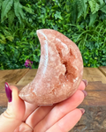 A Pink Amethyst moon on a stand is a beautiful reminder to slow down, listen inward, and move through life with softness and compassion