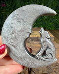 Silver Sheen Obsidian Moon & Wolf Carving ✨