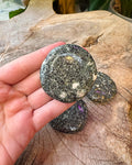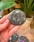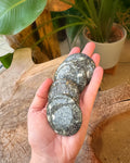 This Preseli Blue Stone Palm Stone is a tactile and grounding piece of a sacred British crystal. Steeped in legend, it is said to hold a connection to Merlin and the ancient builders of Stonehenge, carrying the energy of ancient wisdom and mystical power.